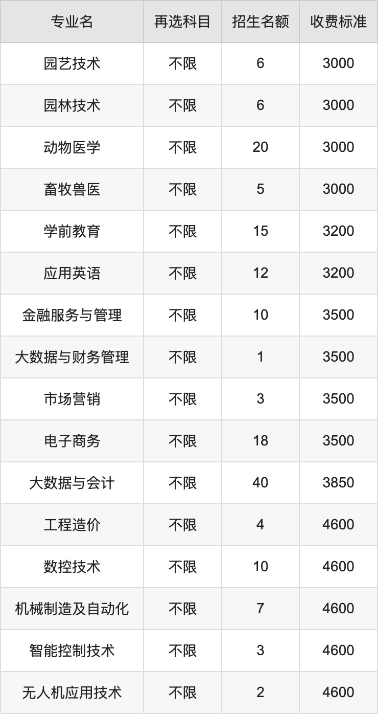 | 高职专科批 | 历史 | 园艺技术 | 6 |