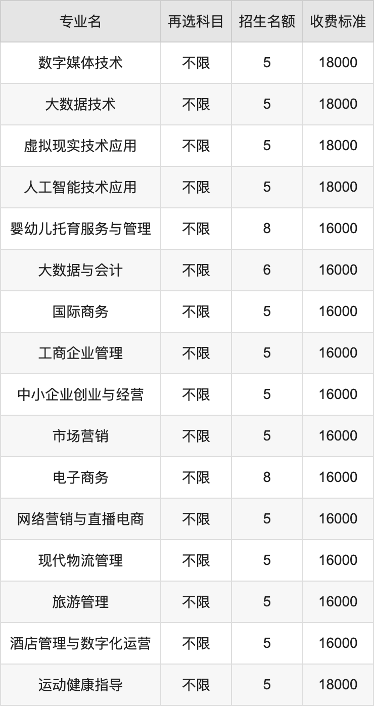 | 专科批 | 历史 | 数字媒体技术 | 5 |