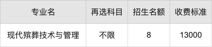 | 专科批 | 历史 | 现代殡葬技术与管理 | 8 |