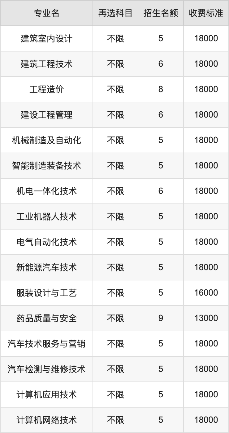 | 专科批 | 历史 | 机电一体化技术 | 6 |