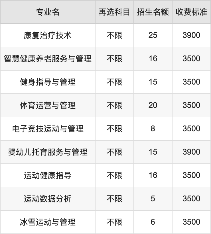 | 高职专科批 | 历史 | 健身指导与管理 | 15 |
