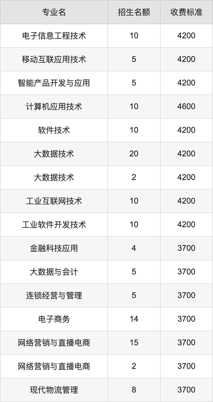 河南机电职业学院在文科高职高专批招生的各个专业,每年的学费是3700元-4600元。招生人数最多的专业是学前教育,2024年招70人,学费是3700元。