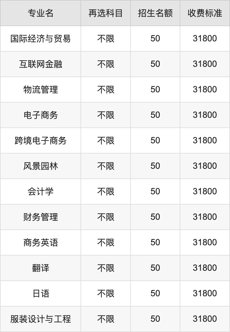 广东理工学院在历史组本科批招生的各个专业,每年的学费是31800元。招生人数最多的专业是国际经济与贸易,2024年招50人,学费是31800元。