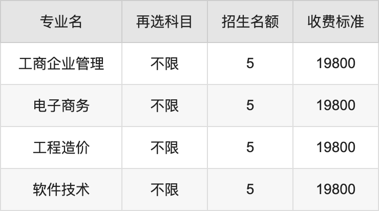| 专科高职批 | 历史 | 工程造价 | 5 |