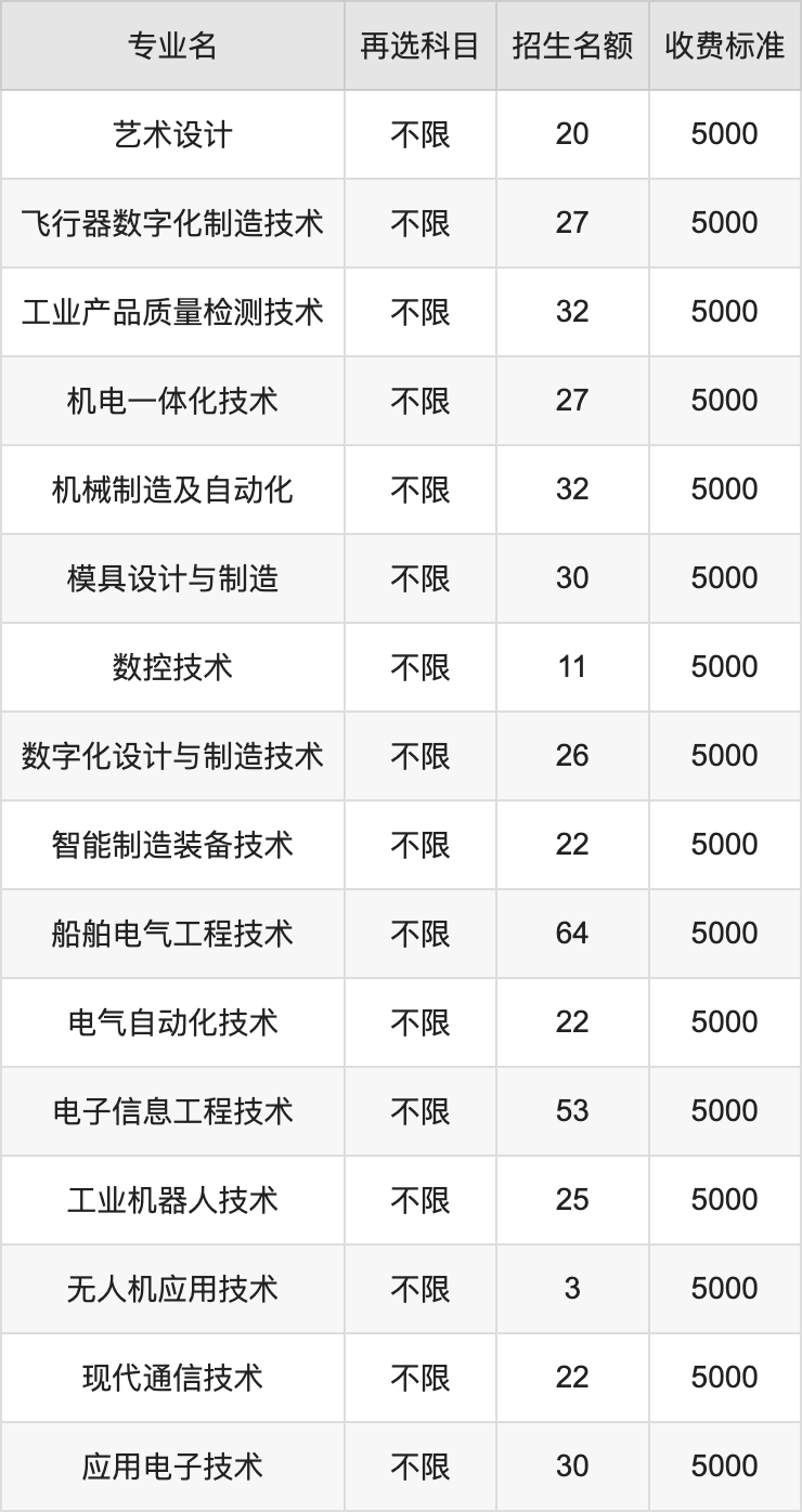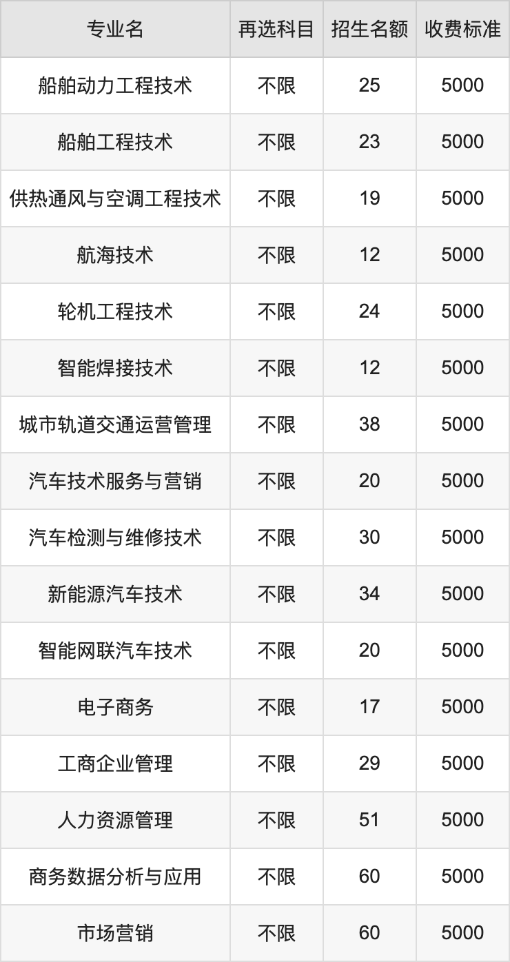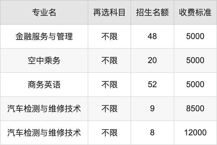 | 高职专科 | 历史 | 汽车检测与维修技术 | 30 |