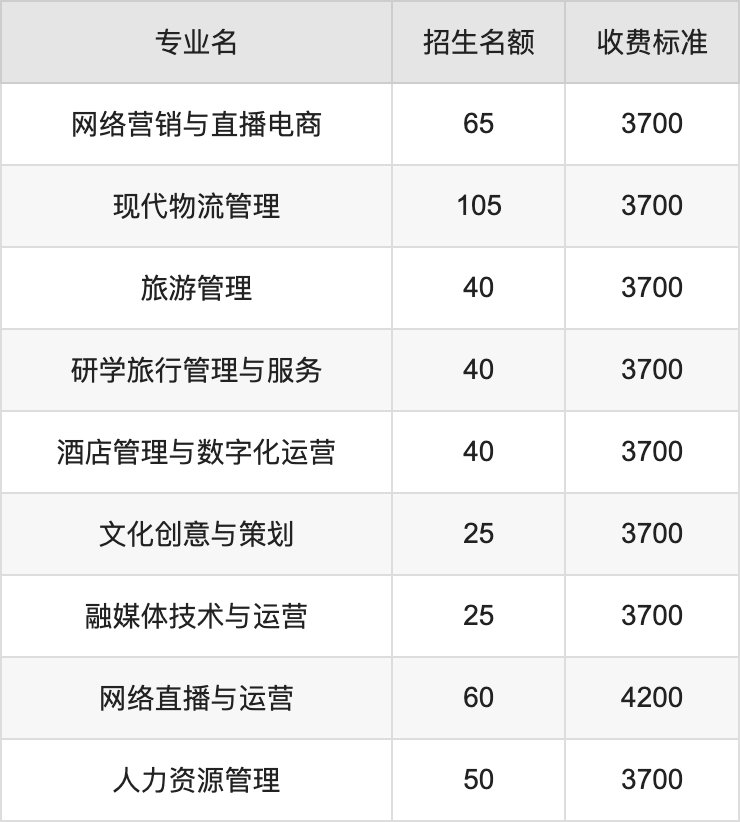 | 高职高专批 | 酒店管理与数字化运营 | 40 |