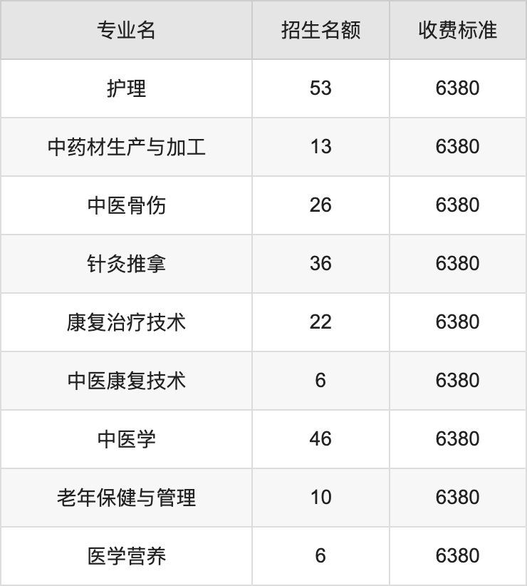 四川中医药高等专科学校在文科专科批招生的各个专业,每年的学费是6380元。招生人数最多的专业是护理,2024年招53人,学费是6380元。