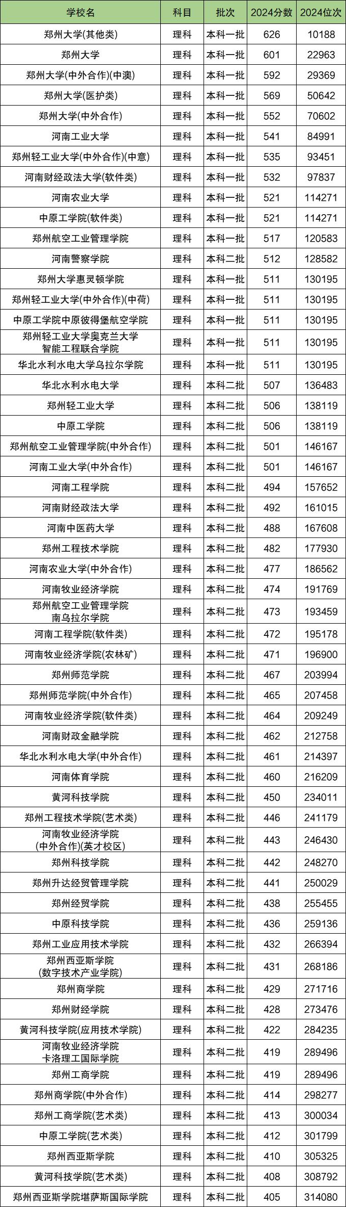 2024年郑州本科各大学中,在理科类分数线最高、最难考的院校是郑州大学(其他类),2024年录取分数626分,录取位次10188位;