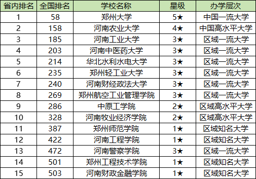注:本文整理出的郑州各大学排名均为郑州公办本科院校的排名,更多院校排名可在本文上下方输入分数进入页面了解。
