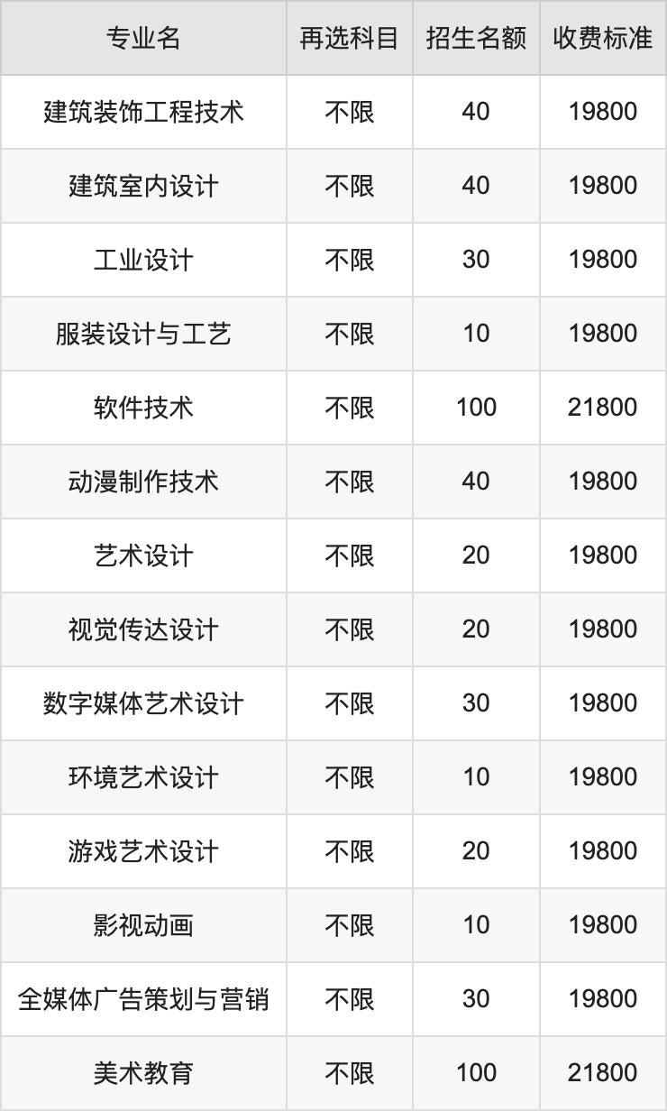 | 高职专科批 | 历史 | 艺术设计 | 20 |