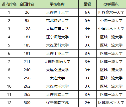 注:本文整理出的大连各大学排名均为大连公办本科院校的排名,更多院校排名可在本文上下方输入分数进入页面了解。