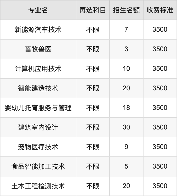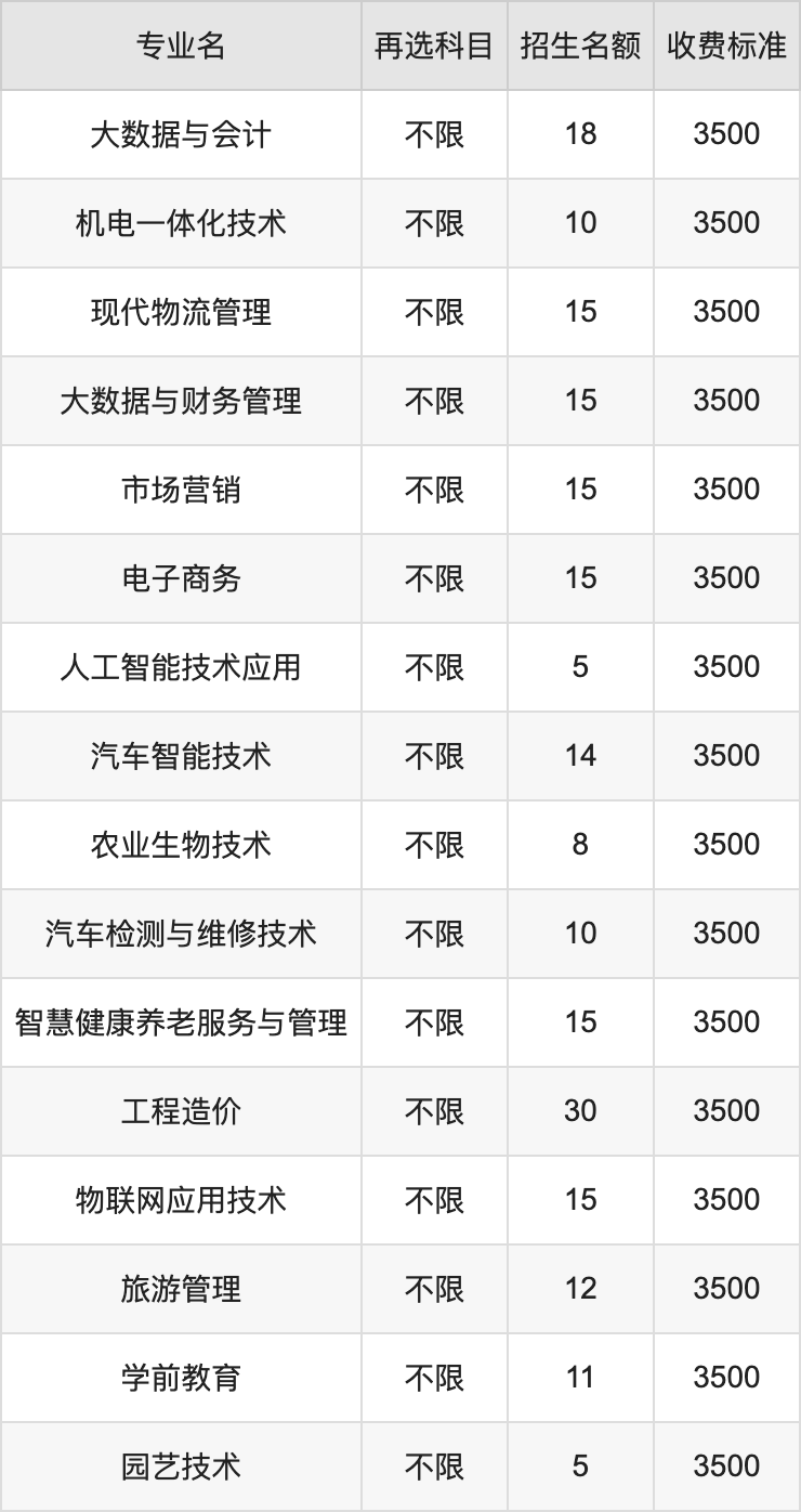 遵义职业技术学院在历史组高职专科招生的各个专业,每年的学费是3500元。招生人数最多的专业是工程造价,2024年招30人,学费是3500元。