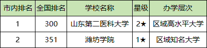 注:本文整理出的潍坊各大学排名均为潍坊公办本科院校的排名,更多院校排名可在本文上下方输入分数进入页面了解。