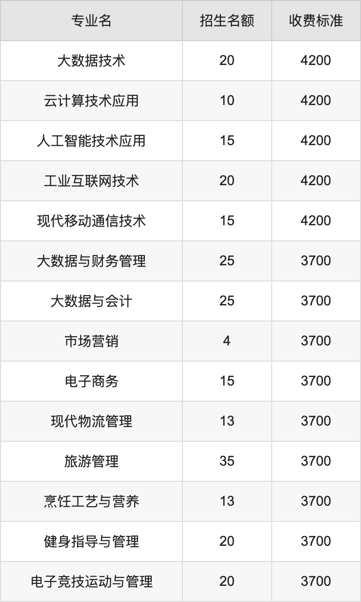 河南工业和信息化职业学院在文科高职高专批招生的各个专业,每年的学费是3700元-4200元。招生人数最多的专业是机械制造及自动化,2024年招35人,学费是4200元。