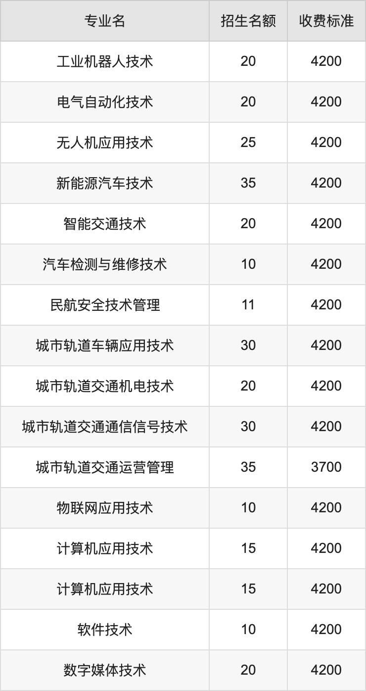 | 高职高专批 | 城市轨道交通机电技术 | 42 |