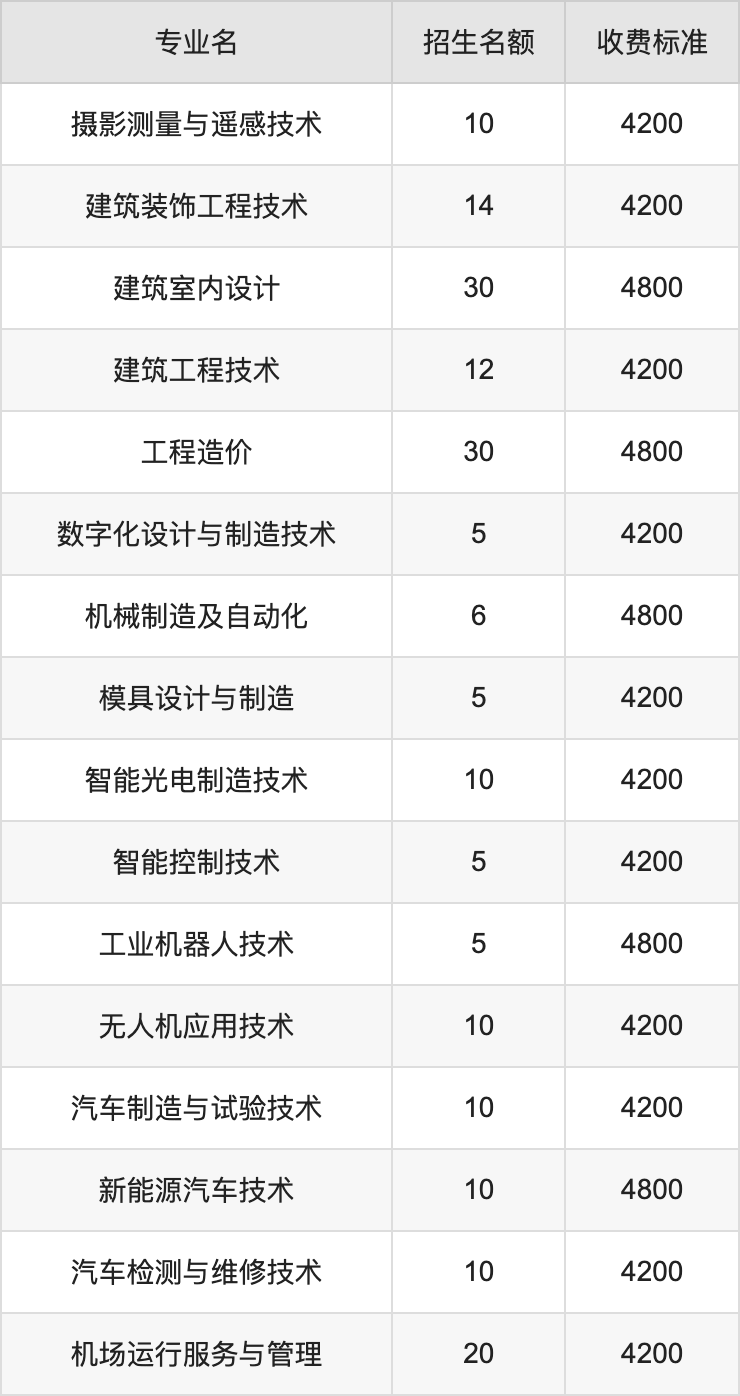 | 高职高专批 | 工程造价 | 30 |