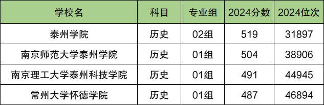 2024年泰州本科各大学专业组录取分数线(历史类):