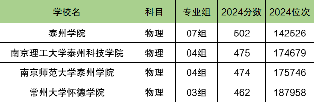 2024年泰州本科各大学专业组录取分数线(物理类):