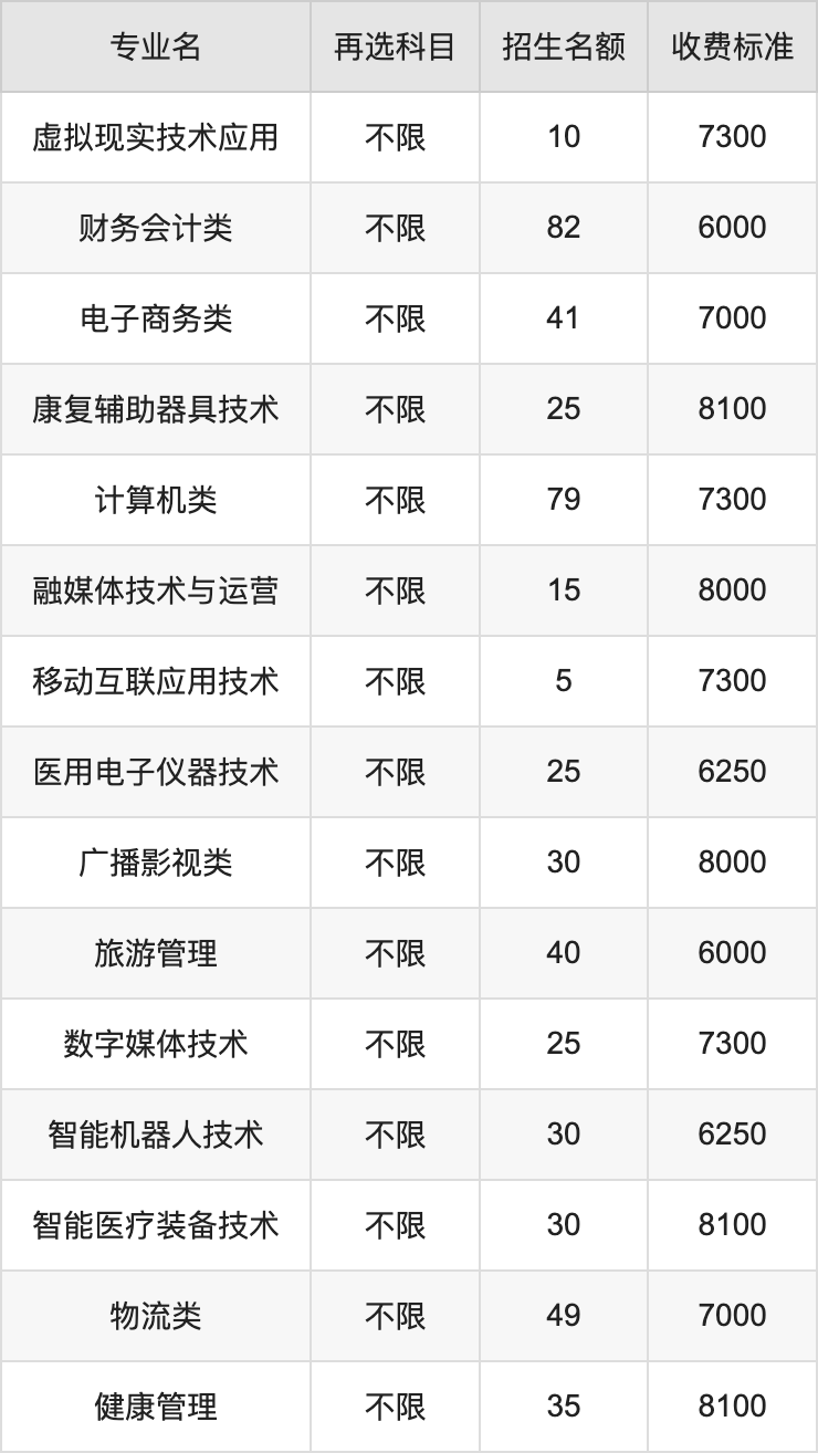 | 高职专科批 | 物理 | 旅游管理 | 10 |