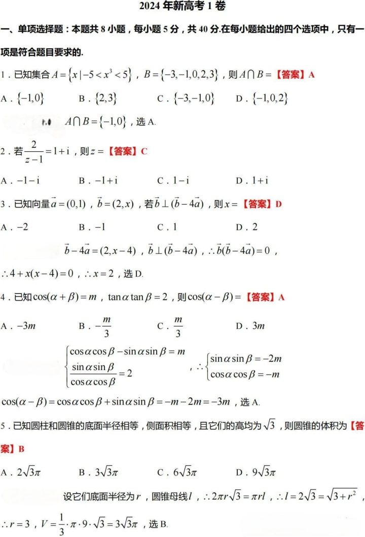 一般来说,高考试卷及官方答案会在高考结束后的一至两周内公布。但由于时间紧迫,许多考生想早点着手准备高考志愿填报,所以为帮助各位考生预测高考成绩,本文中的试卷答案是根据考生考后回忆、网上搜集而成的,仅供参考。