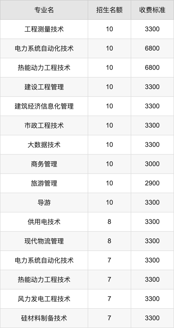 昌吉职业技术学院在文科专科批招生的各个专业,每年的学费是2900元-6800元。招生人数最多的专业是工程测量技术,2024年招10人,学费是3300元。