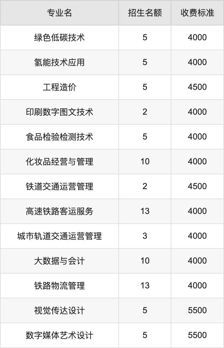 山西铁道职业技术学院理科专科高职批共计23个招生专业,各专业每年的学费是4000元-5500元。