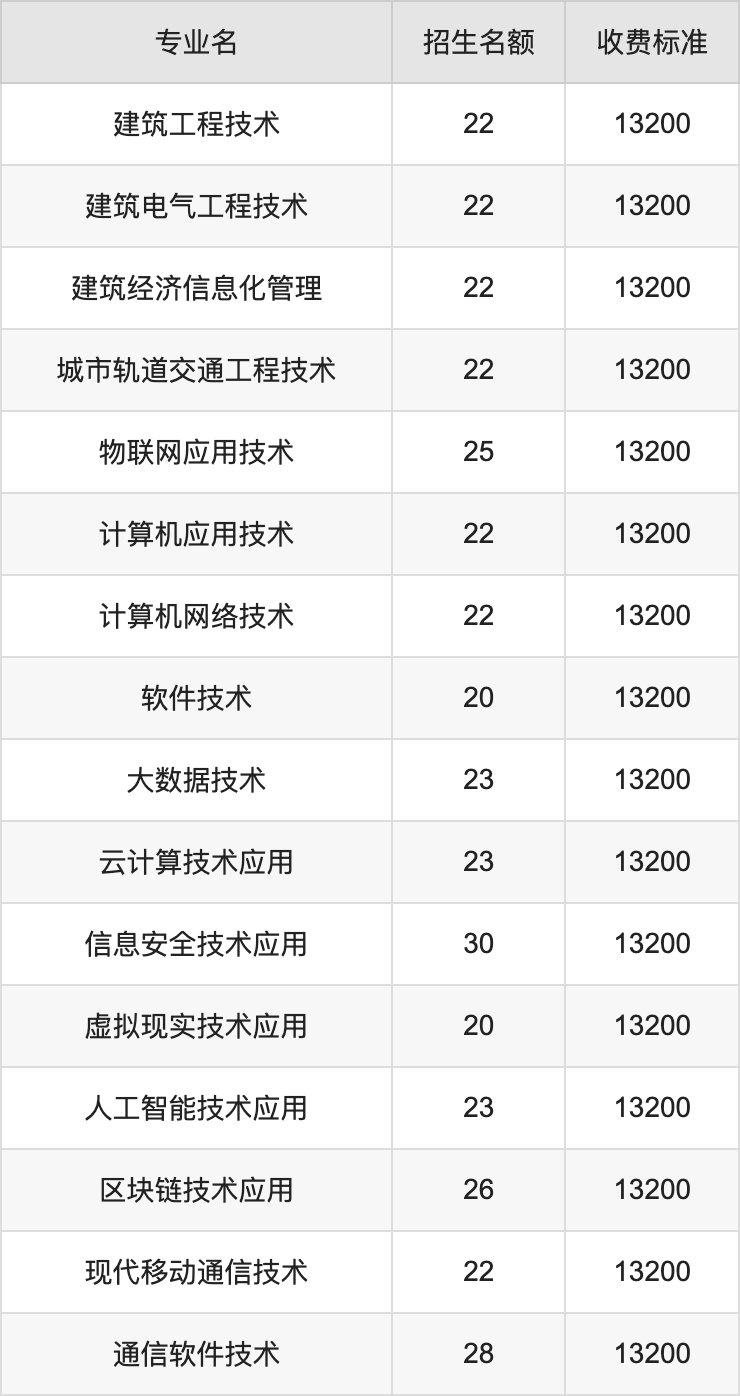 西安信息职业大学理科高职专科批共计40个招生专业,各专业每年的学费是13200元。