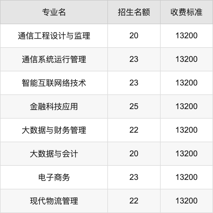 | 高职专科批 | 通信工程设计与监理 | 20 |