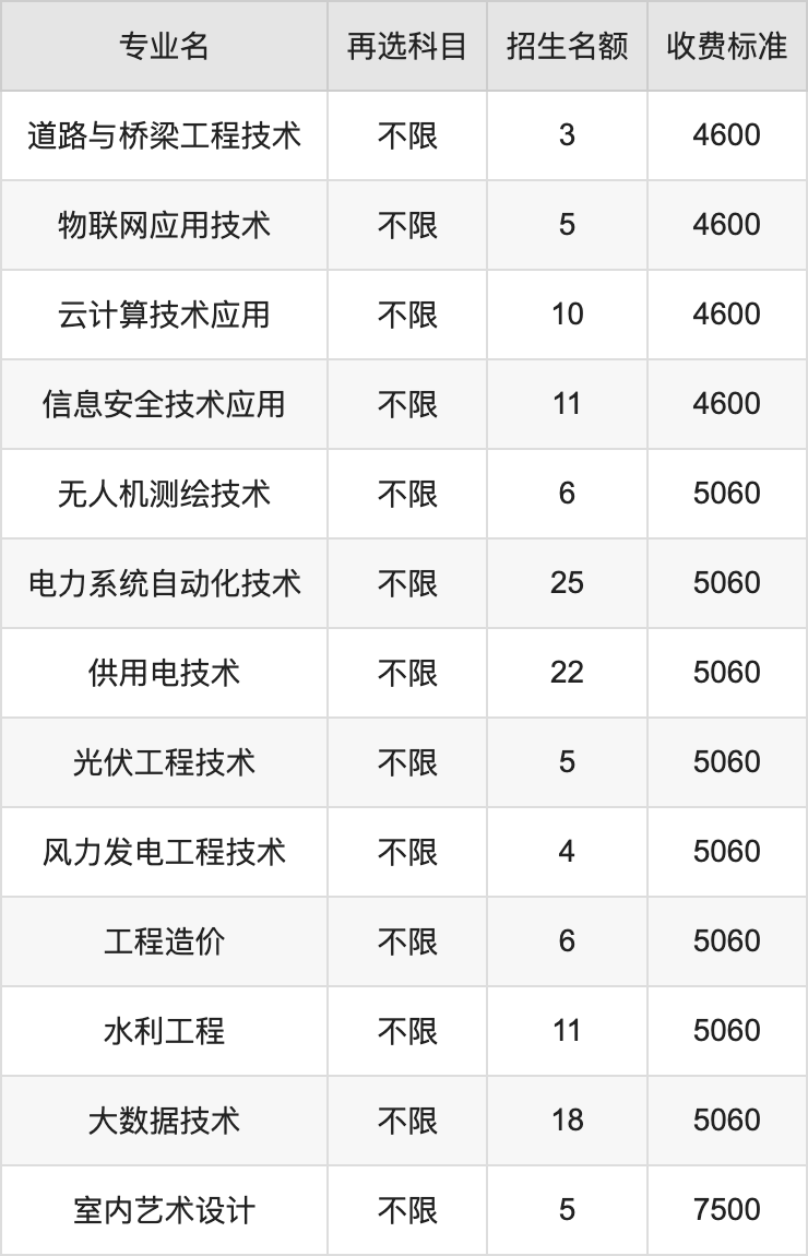 12.水利水电工程技术:学费是4600元