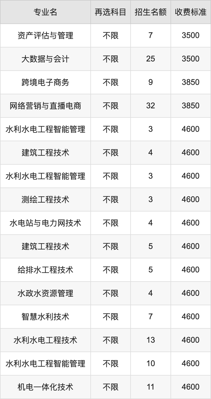 二、湖南水利水电职业技术学院各专业收费标准