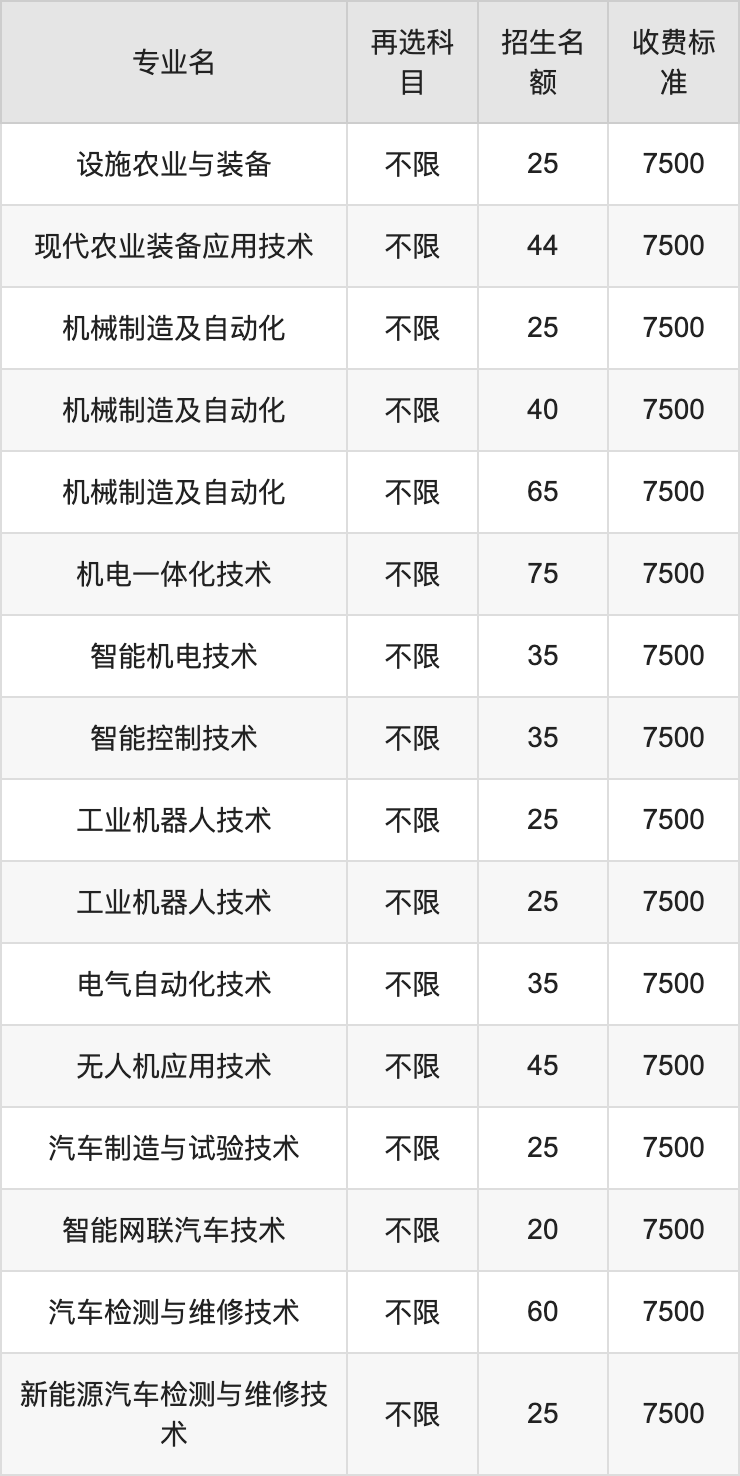 | 高职高专批 | 历史 | 现代农业装备应用技术 | 44 |