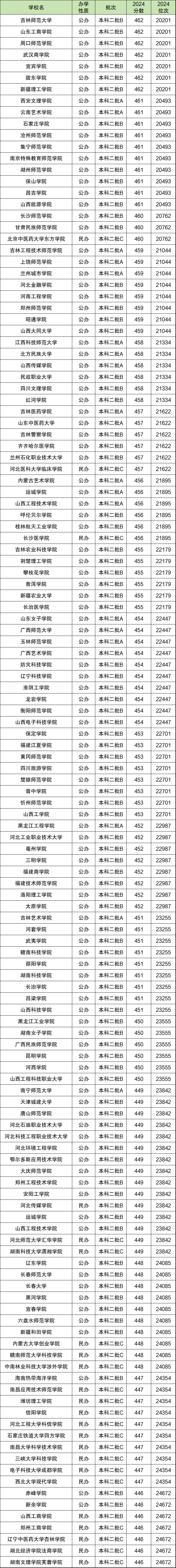 2万-2.5万名中最低位次对应的大学是山西工商学院、辽宁中医药大学杏林学院等7所院校,最低录取位次为24672位,位次对应分数为419分;