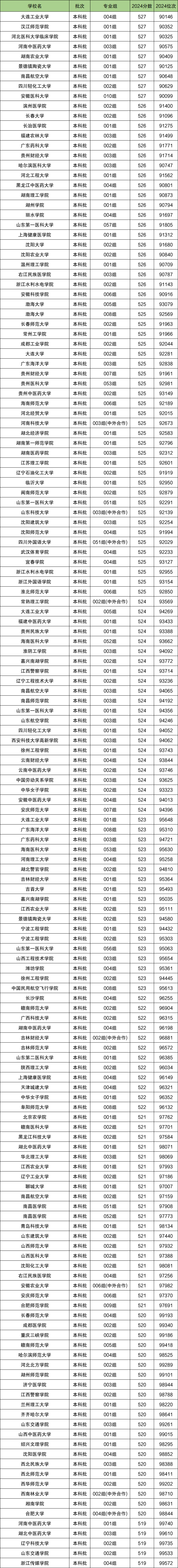在7-9万名中有不少省重点大学,如大连工业大学、湖南农业大学、景德镇陶瓷大学、南昌航空大学、安徽医科大学、福建农林大学、哈尔滨医科大学、河北工程大学等。