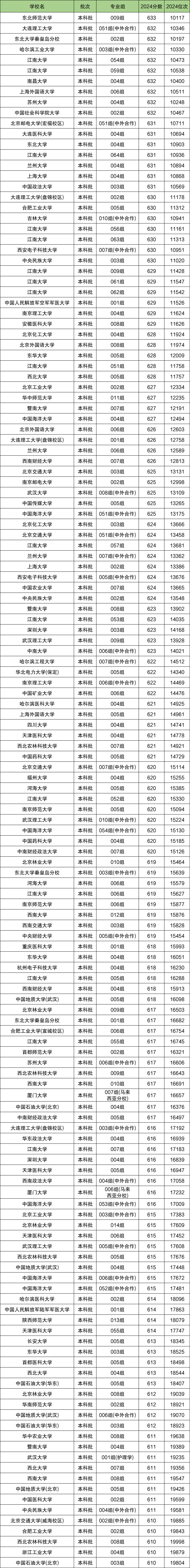 下表为2024年在安徽物理类中分数位次在1-2万名的全部大学。