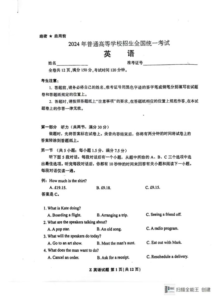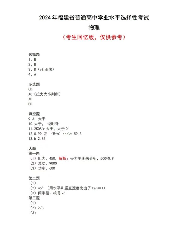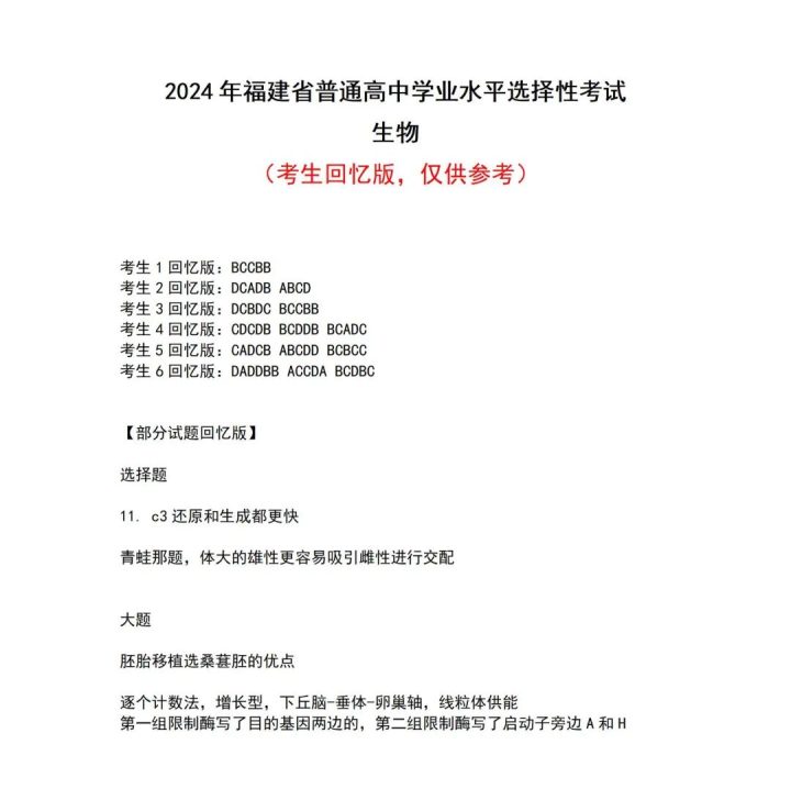 温馨提示:2024福建高考官方试卷及答案将在高考结束后的一至两周才会公布,本文汇总的是高考考生考后回忆版本的试卷及答案,仅供考生们参考。