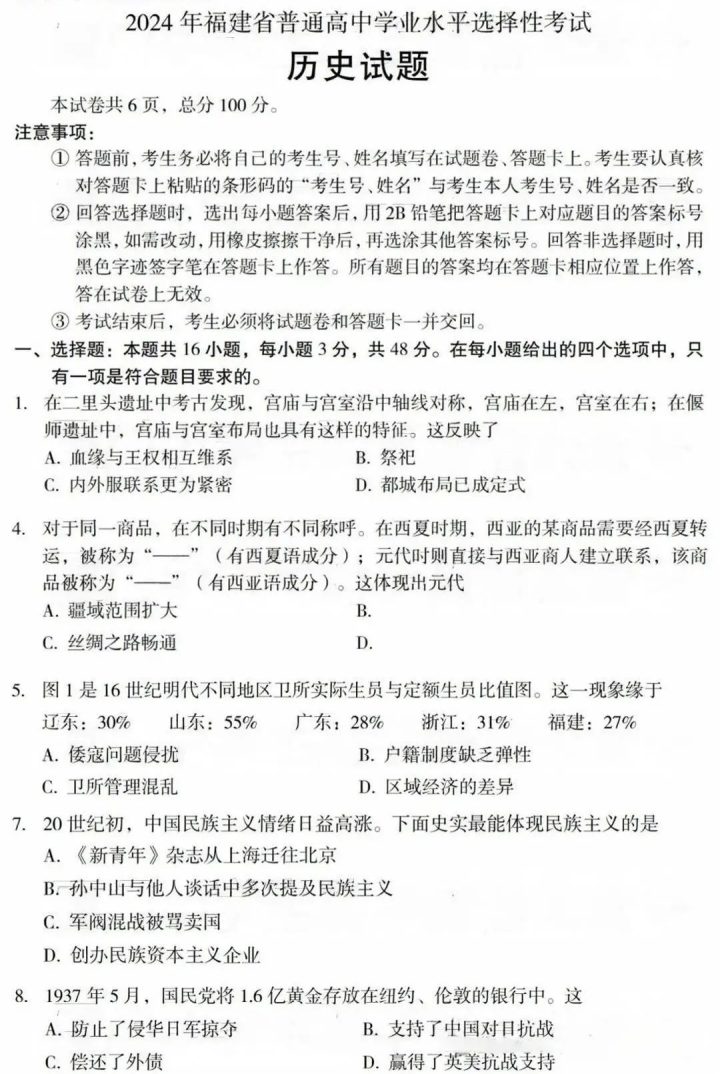 高考历史试卷答案:请同学们稍安勿躁,2024年福建高考历史答案及试卷真题正在准备上传中,考生核对答案时,请保持冷静和自信,无论结果如何都要相信自己的能力。