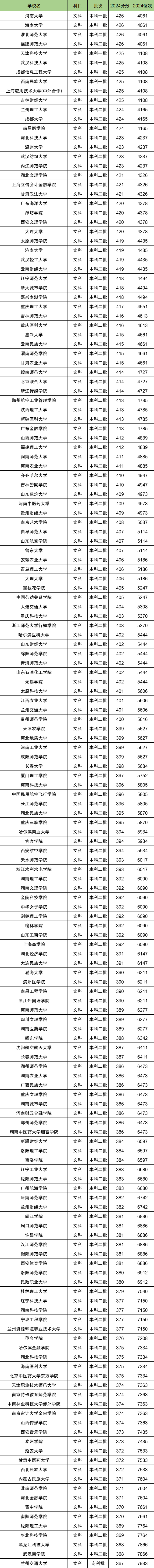 下表为2024年在新疆文科中分数位次在4千到8千名的全部大学。