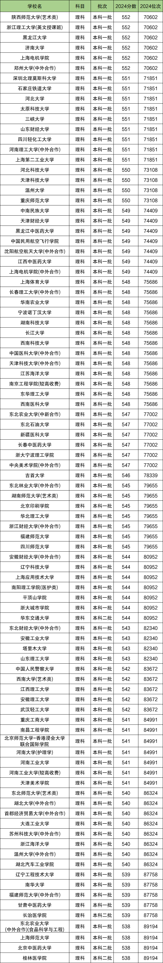 排名在7万-9万名对应的分数段为552分-538分,成绩在河南理科一本线上41分-27分的同学可以重点关注。