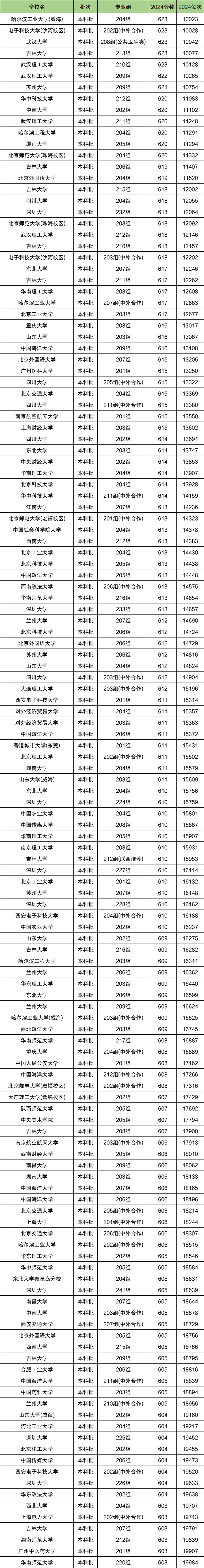 下表为2024年在广东物理类分数位次在1万-2万名的全部大学。