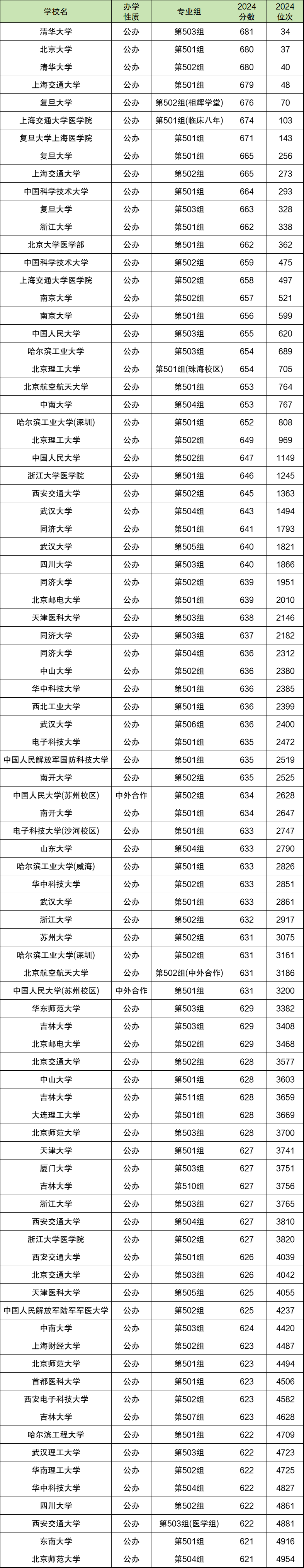 根据江西省2024年全国大学录取分数线可知,在1万名之前的理科考生能上的院校专业组有个,对应的分数为681分~621分,对应位次为34~4954位。