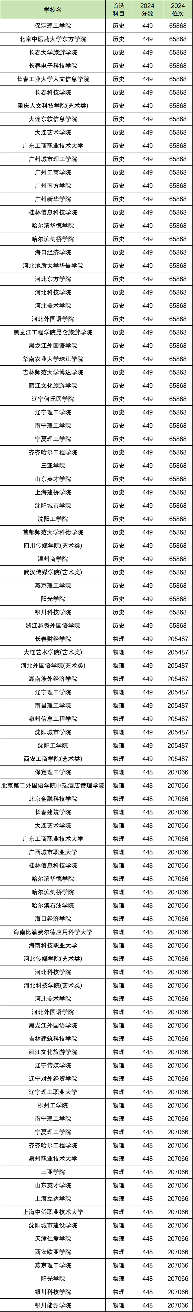 下面是2024年高考录取中,河北省收分在450分以下的民办本科大学名单:
