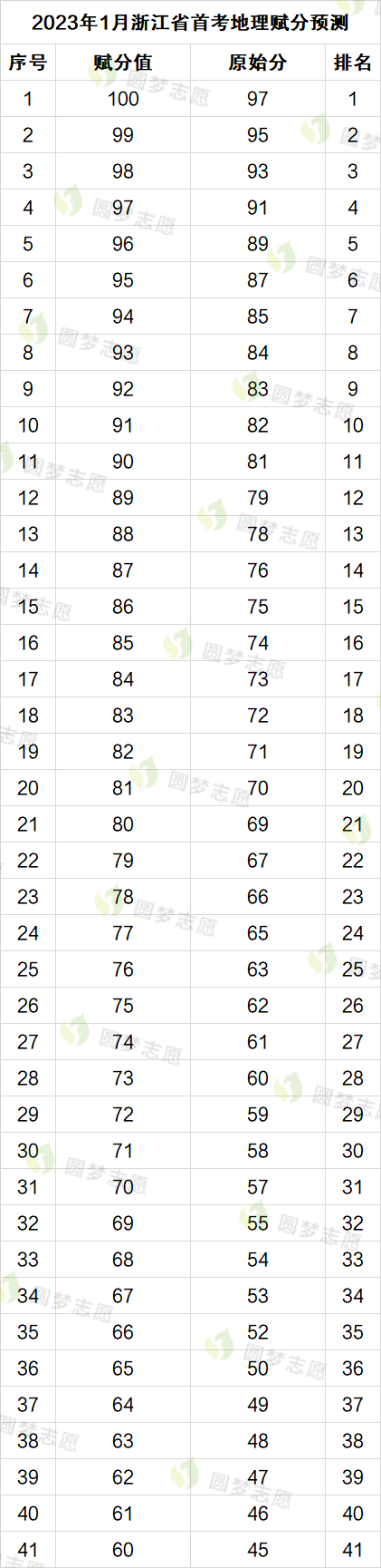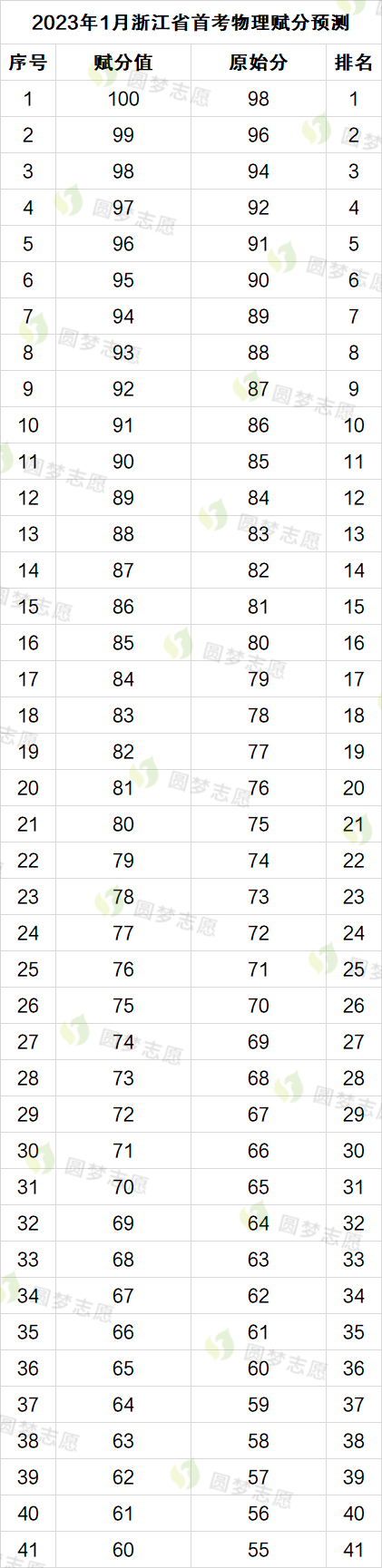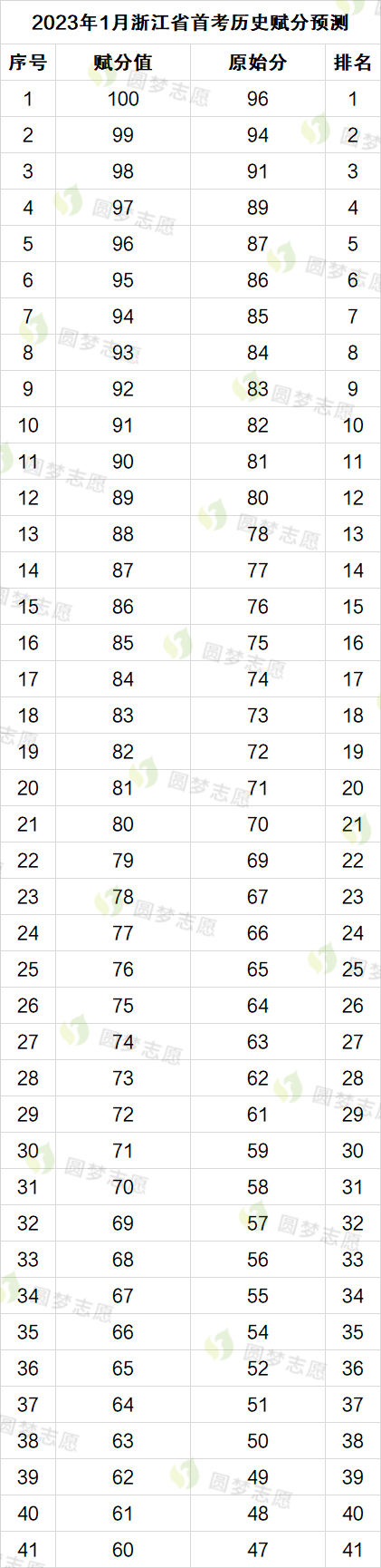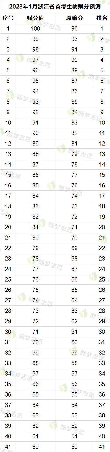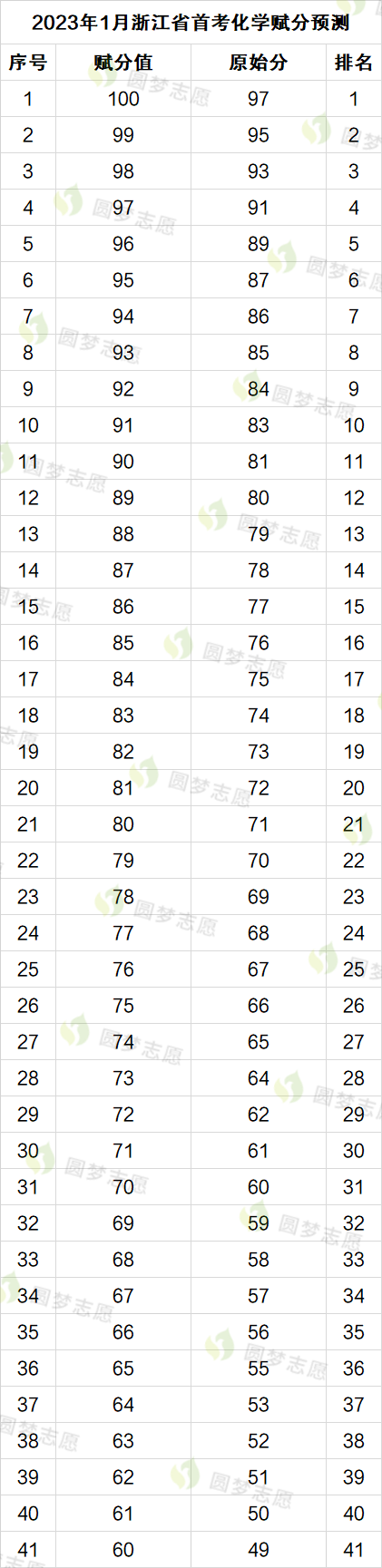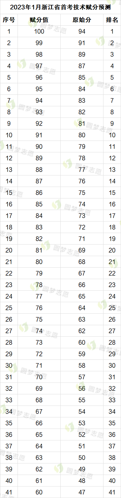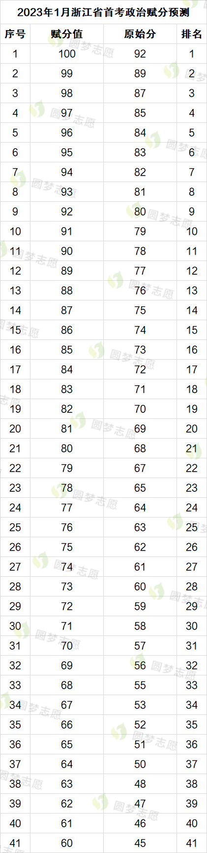 2023年1月首考各学科赋分情况预测情况如下表所示,请注意,本预测仅为预测,最终准确成绩大家需要以浙江省教育考试院发布的信息为准!