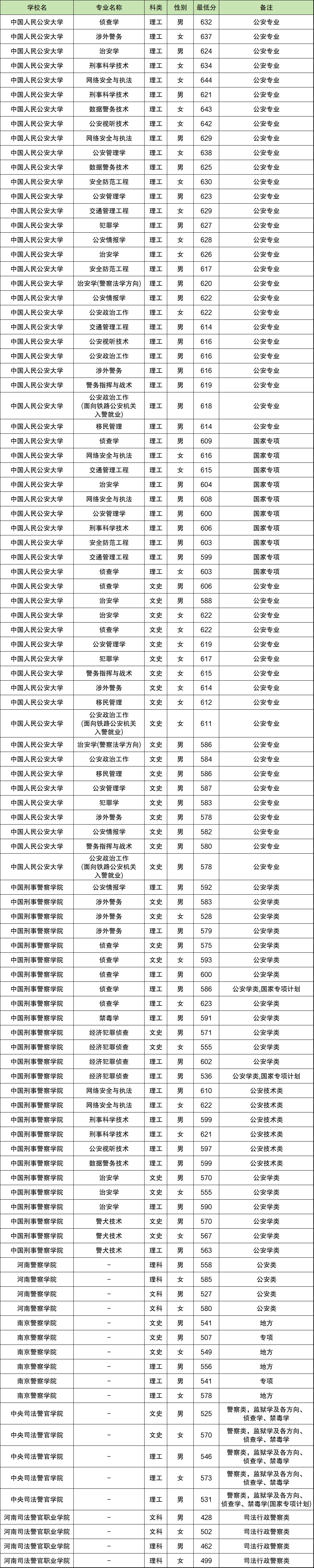 2024全国警察学院在河南理科录取分数线462分-644分。最高录取分数线对应院校:中国人民公安大学(网络安全与执法、女生);最低录取分数线对应院校:河南司法警官职业学院(男生)。