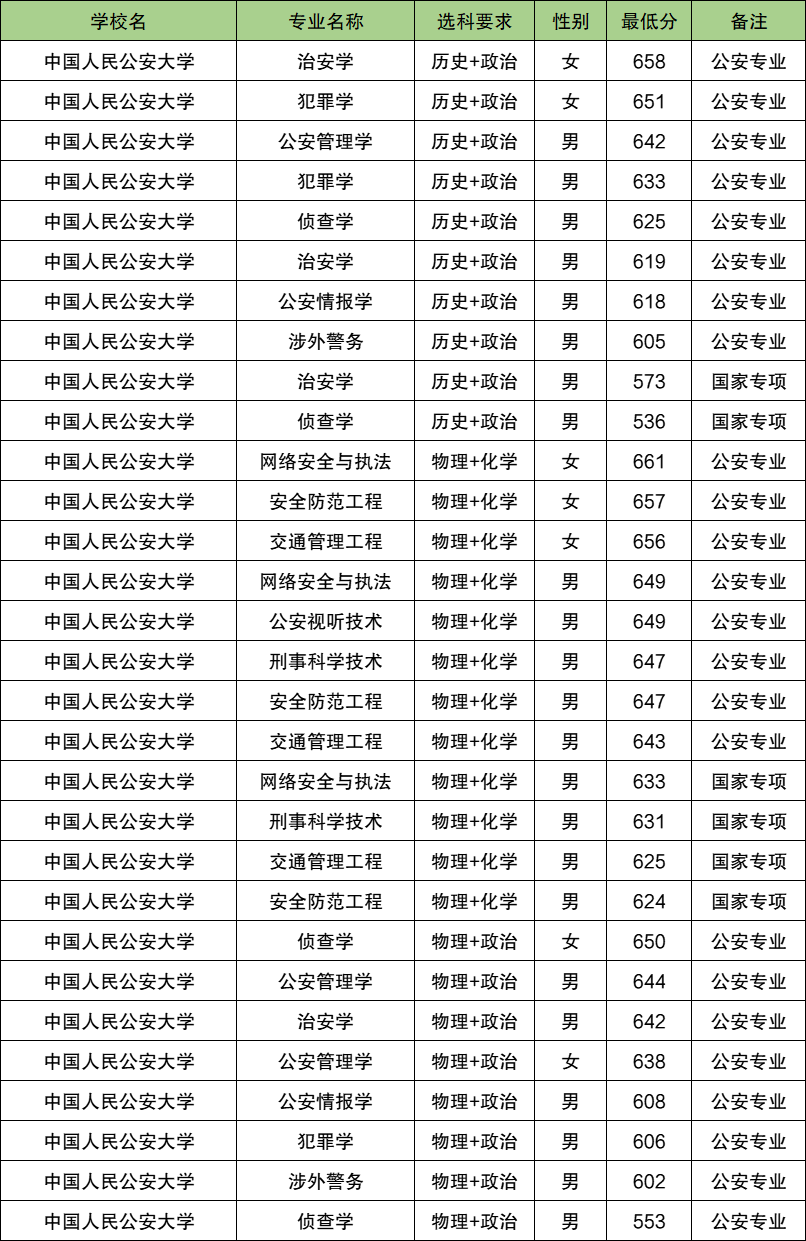 | 中国人民警察大学 | 物理+政治 | 633 | 公安类 |