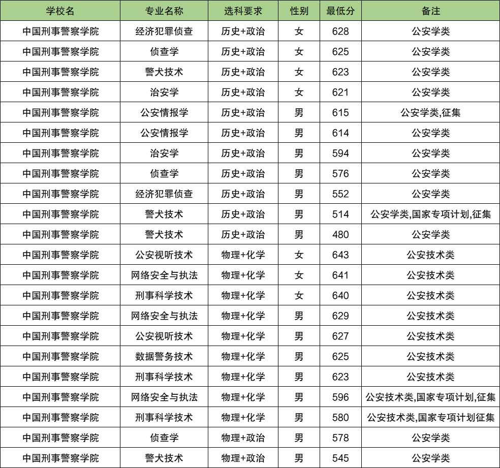 | 中国人民警察大学 | 历史+政治 | 583 | 公安类 |