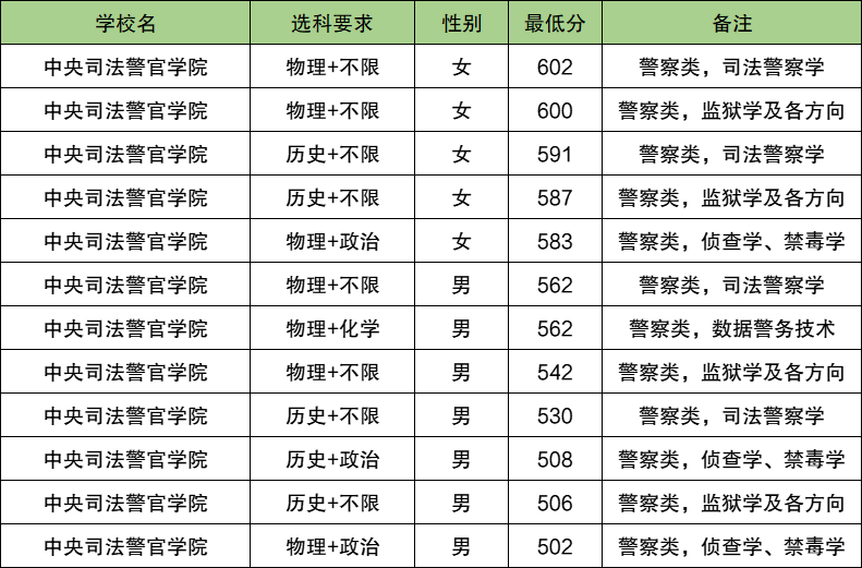 | 中国人民警察大学 | 历史+政治 | 男 | 557 |