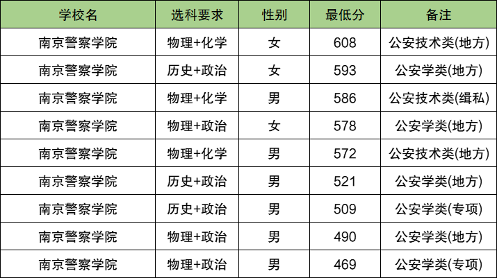 | 郑州警察学院 | 物理+化学 | 男 | 569 |