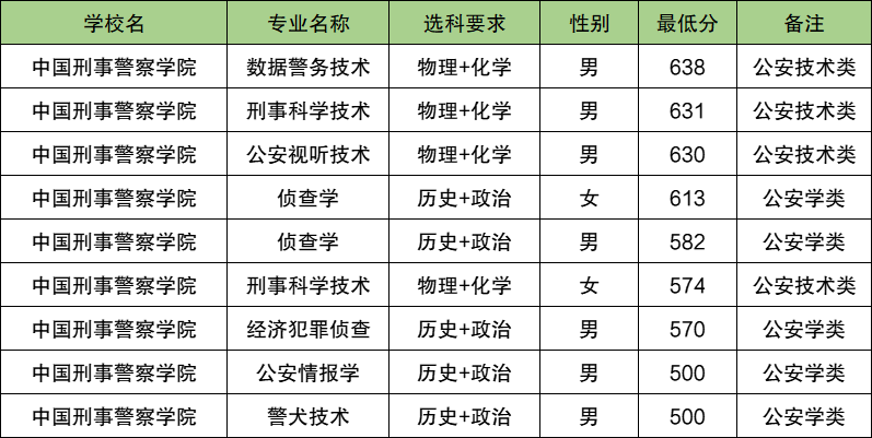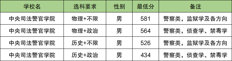 | 浙江警察学院 | 历史+政治 | 男 | 517 |