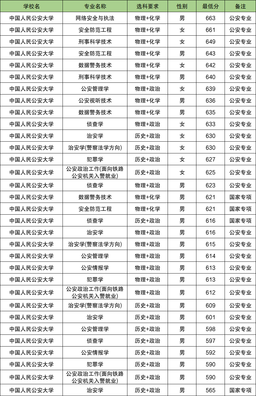 | 云南警官学院 | 禁毒学 | 物理 | 男 | 546 |