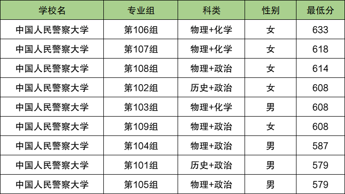 | 浙江警察学院 | 物理 | 女 | 592 |